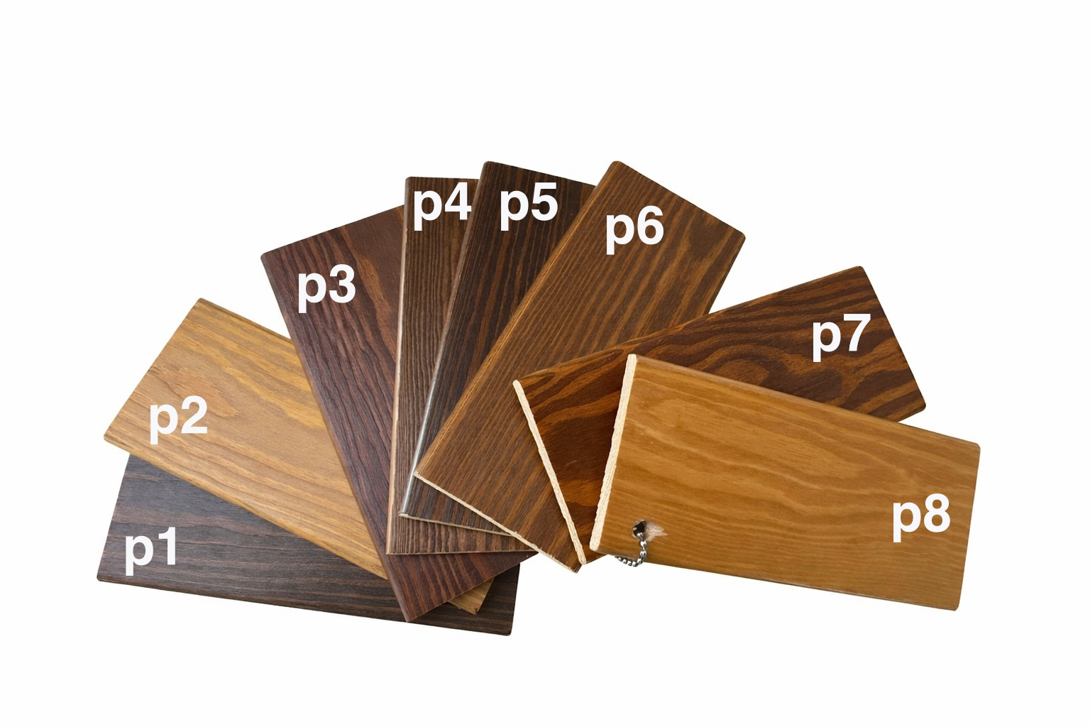 Carta de acabados más solicitados para pino. Aunque también podemos tintarlos otros colores, estos son los que más nos piden